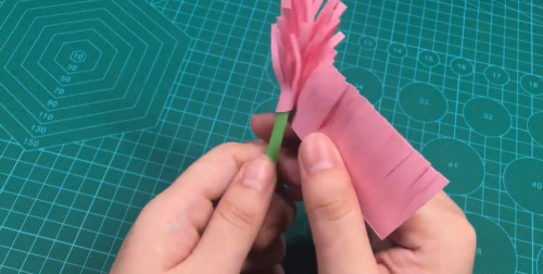 粘在纸棍上。