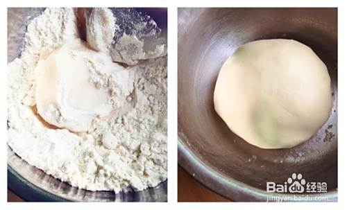 用搅拌棍,搅拌均匀,不粘锅,不沾手即可,这样月饼面就做好了。