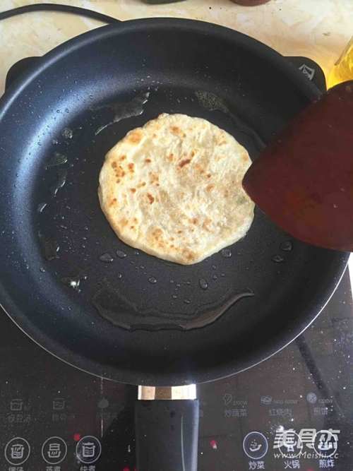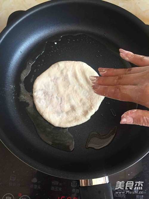 10不粘锅内放底油,开火用手轻按数下,达到自己喜欢的厚度就可