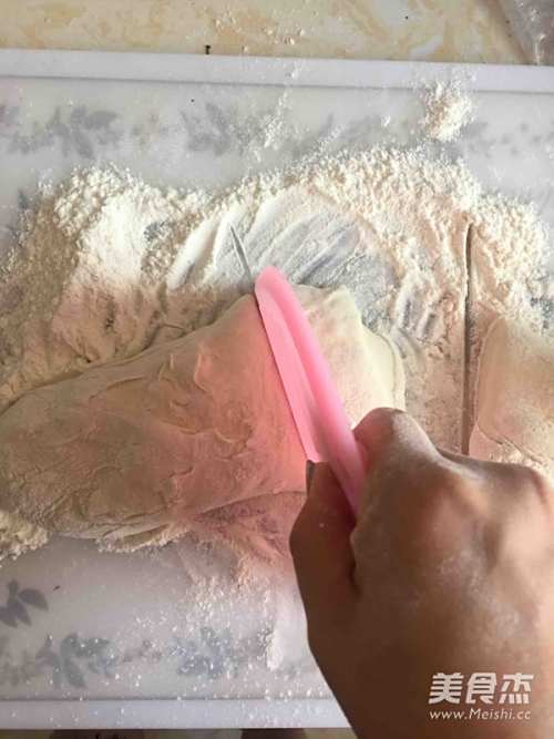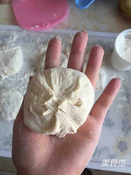 9不用擀面杖,只需用手轻轻摊开面团,像包包子一样将馅包里就好