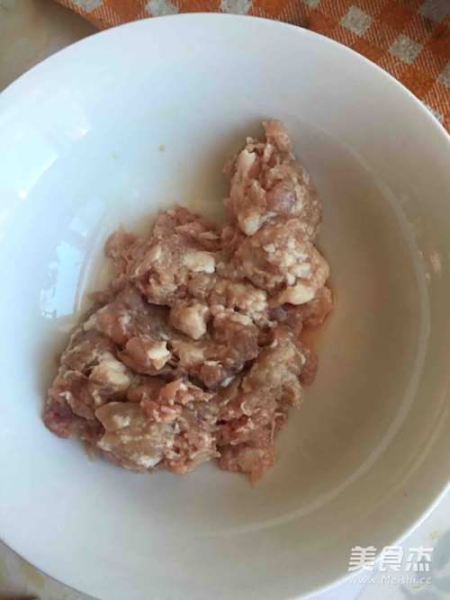 6将十三香,盐,酱油加入肉馅中,再加入少量清水搅拌