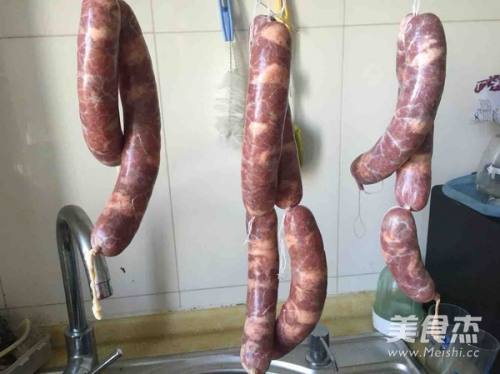 415厘米左右用细线扎节。结扎后的湿肠,用细针每隔1~2厘米刺一个小孔,以便排出肠内的空气,并使肠内水分容易蒸发;