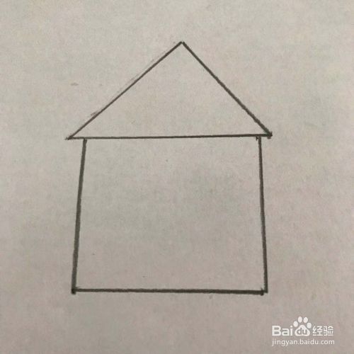 在三角形的下方画一个正方形,作为房子的主体,见下图