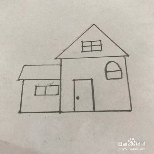 在大房子的傍边再画一个小房子,见下图
