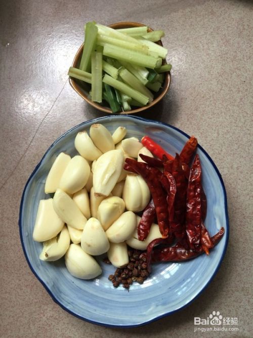 大蒜子去皮,干辣椒冲洗干净,芹菜切段。(大蒜,尽可能多放一些)