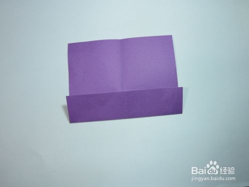 第7步、翻面,先将左右两条边对折,展开,加深中间折痕印记。再将左右两条短边折向中间折痕。