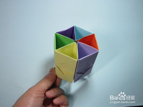 第12步、全部粘好后,漂亮的笔筒就折好了,虽然用的纸张比较多,不过胜在操作简单,也比较的实用。喜欢的朋友赶紧去试试吧。