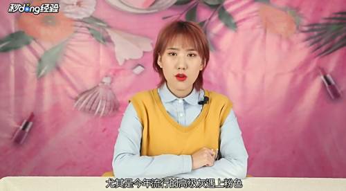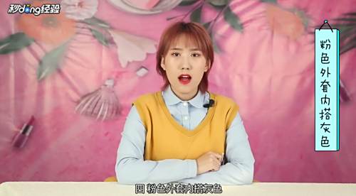 9粉色外套内搭灰色。