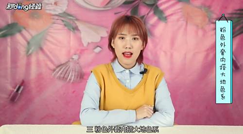 6粉色外套内搭大地色系。