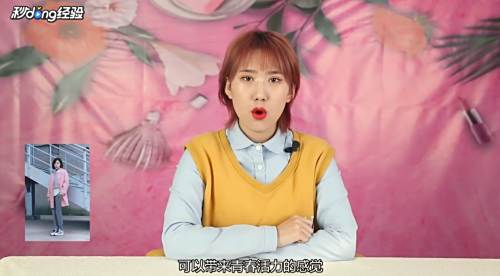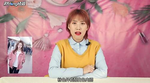 3粉色外套配白色内搭。