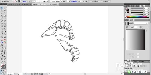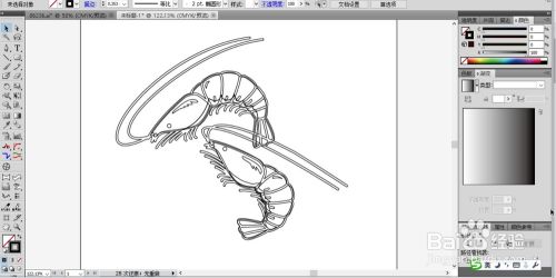 继续完善这只虾,画出虾的尾巴,还有脚的细节。