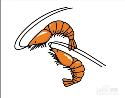继续画出另外的一只虾的内部结构,也可以从第一只虾复制而来再稍加改变。
