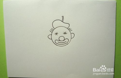 然后,在圆形外部,用钢笔画出小男孩的帽子出来,帽子不要画的太大了,这样才好看,如下图所示。
