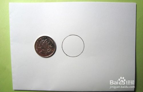 用钢笔在白纸上,沿着硬币的边缘画出一个圆形出来,如下图所示。