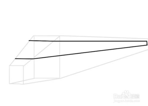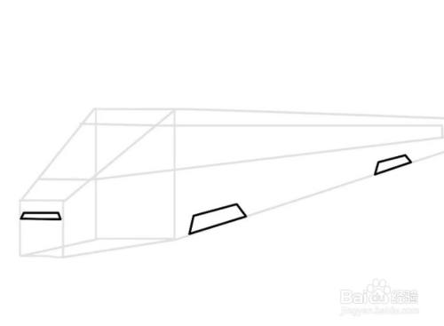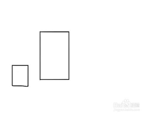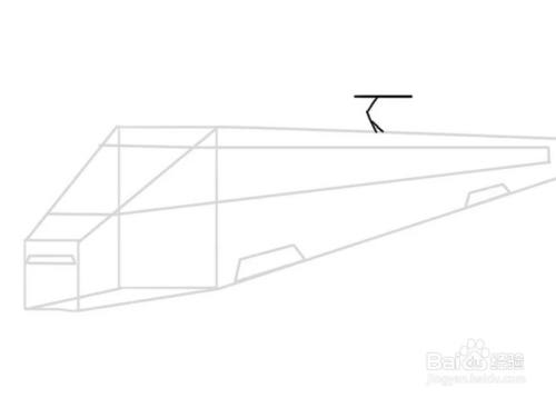 从大长方形右边的两个端点引出两条直线,一直画到纸的边缘,作为车身。