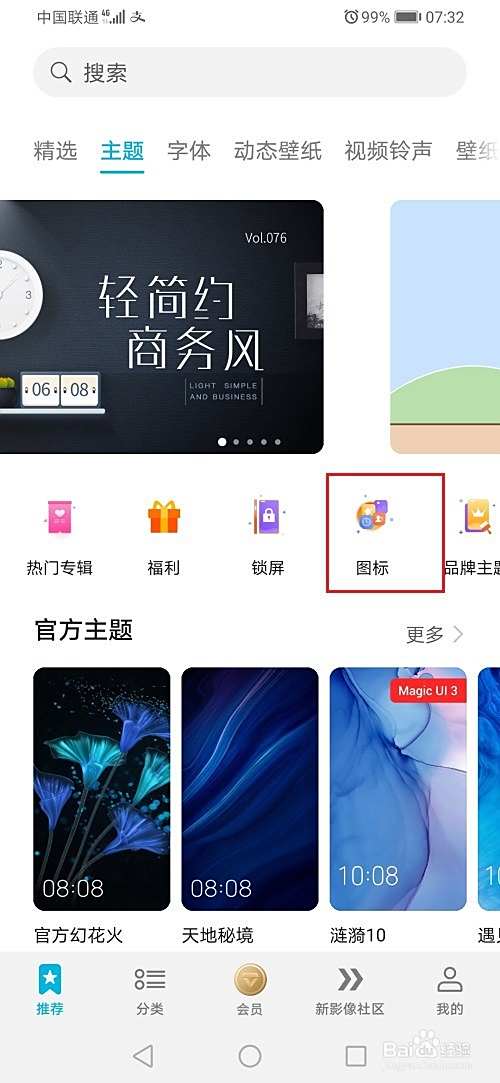 第一步华为手机桌面的图标可以通过主题中的图标设置,点击主题