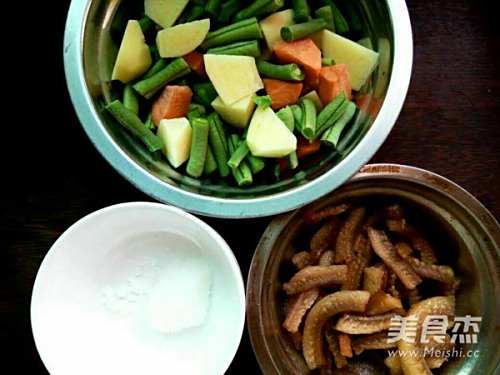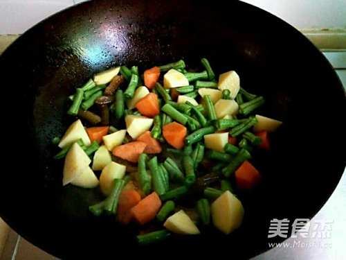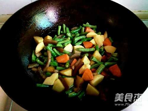 5放入豆角,土豆和胡萝卜