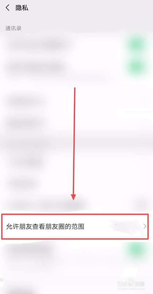 找到“允许朋友查看朋友圈的范围”并点击