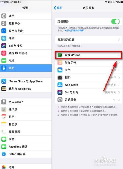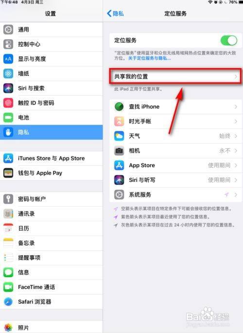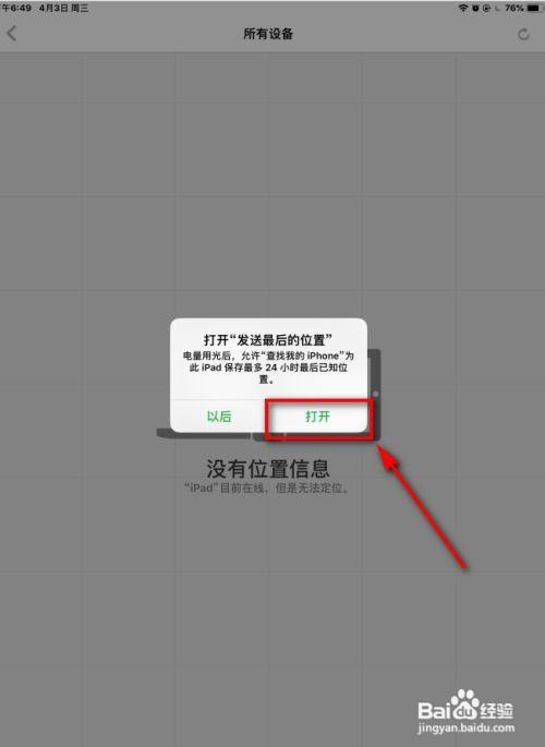 系统跳转,点击打开,发送最后的位置。这样iPad定位就设置成功了。