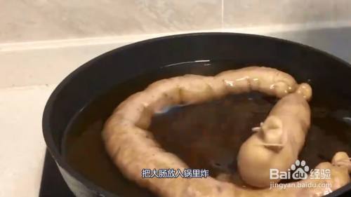 准备好的馅料装入到准备好的大肠里面,准备好后备用,锅中加入足够的水。