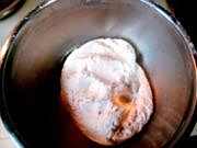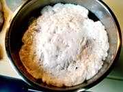 1把江米面白面干酵母拌匀。