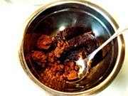 4把市场买回的豆沙馅里加入30克红糖,由于超市里买的豆沙馅很软无法制作炸糕,因此要处理一下。