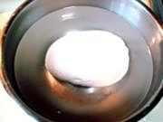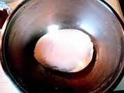 3把面盆里注入清水,然后把合好的面团儿浸泡在清水盆里,进行慢速发酵。