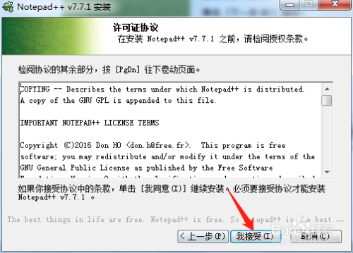 这里点击“下一步”,然后选择“我接受”许可协议: