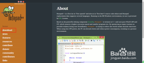 首先我们在浏览器中输入:“Notepad++”,进入它的官方网站: