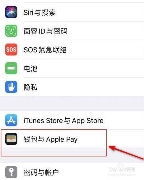 点击页面里的钱包与Apple Pay功能。