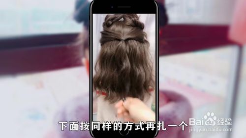 下面按同样的方式再扎一个,接着固定在一起,用皮筋固定好,翻上去再拉起来打一个结,这样好看的头发就扎好了
