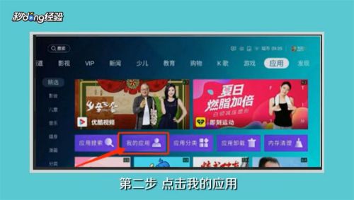 1海信88L54KAI智能激光电视投屏方法,打开电视,进入电视界面,点击“应用”。