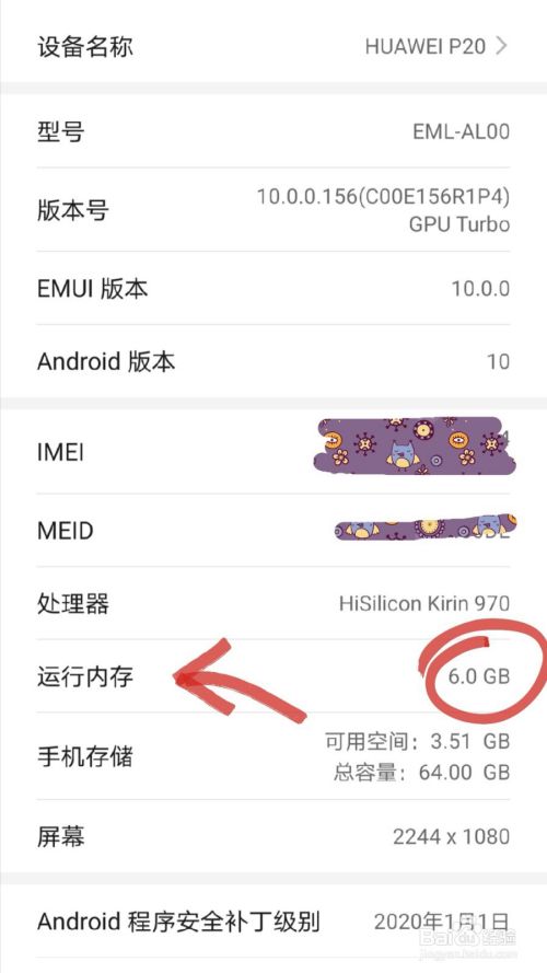 进入“关于手机”页面,往下拉,看到“运行内存”选项,右边的数字就是运行内存,如图可得知该华为手机的运行内存为“6G”