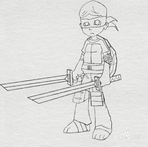 扮演忍者神龟的男孩的简笔画绘制完成。