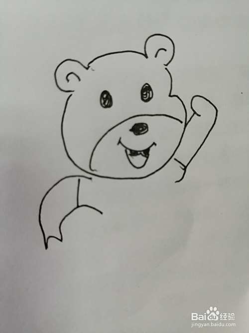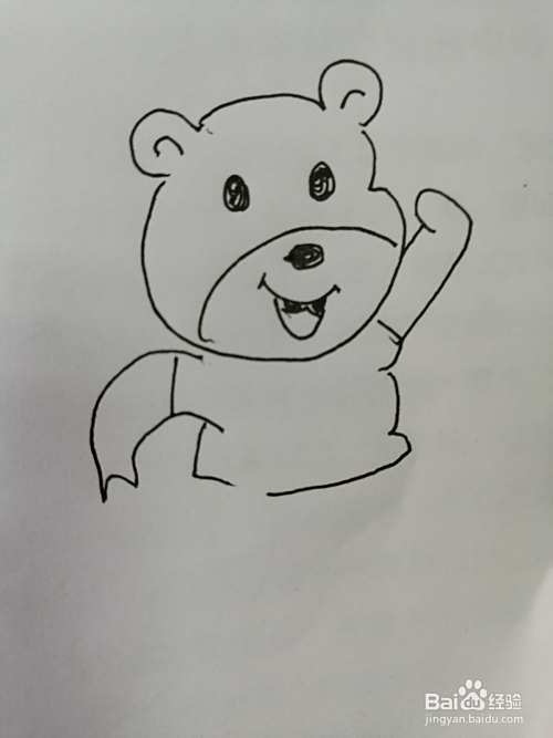 第五步,然后我们继续画出可爱的小熊的身体,注意小熊两只手臂的画法。