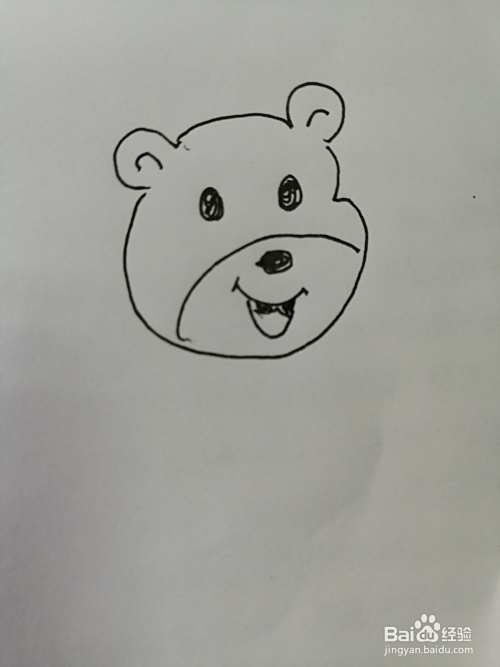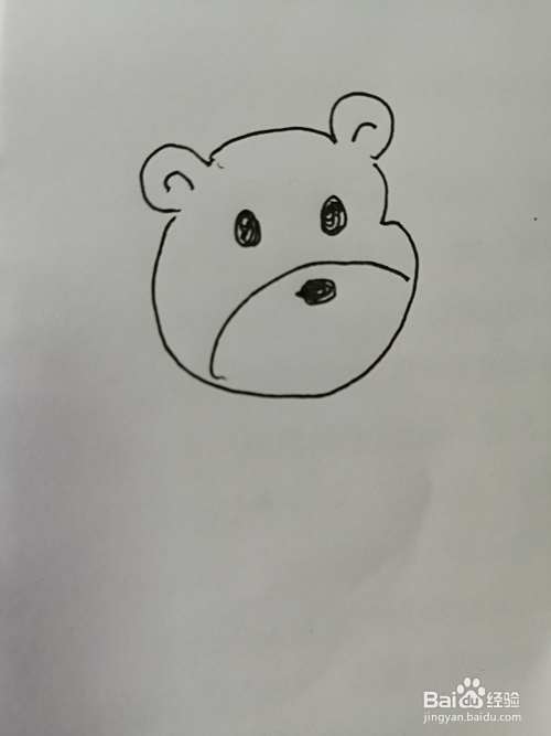 第四步,接着把可爱的小熊的小鼻子和小嘴巴画出来,注意小熊小嘴巴的画法。