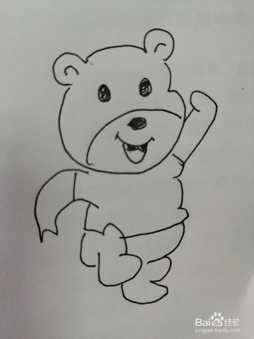 第七步,最后把可爱的小熊的另外一条腿画出来。可爱的小熊就画好了。