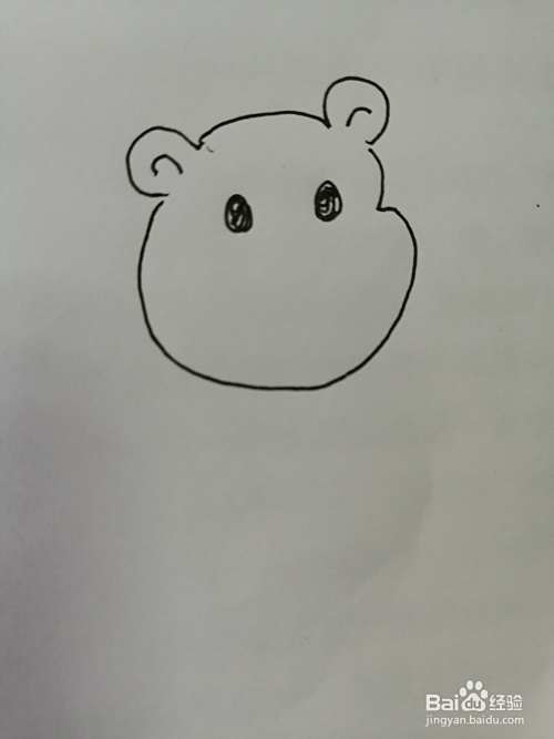第三步,接着在可爱的小熊的头部里面画出两只可爱的大眼睛,小熊的眼睛又大又亮。