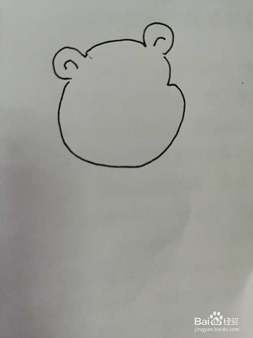 第二步,接着画出可爱的小熊的头部轮廓,小熊头部画法也比较简单。