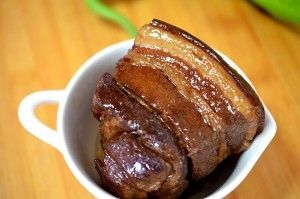 五花肉切大段加葱姜冷水下锅,煮开去浮沫,捞出洗净备用。