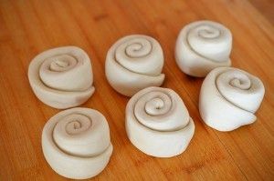 烤箱200度预热。将小面团搓成长梭子形状,擀平,卷成圆柱形,再按扁擀成饼(厚度在0.6cm左右)。