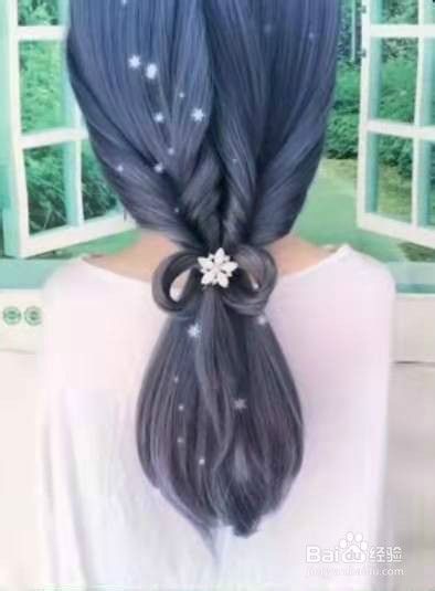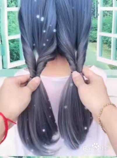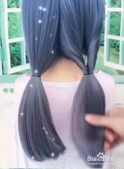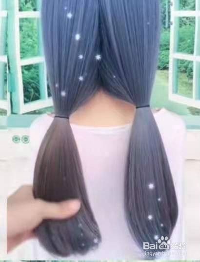 把头发从中间分开,扎成两个低马尾。见下图