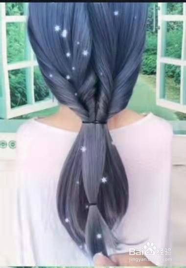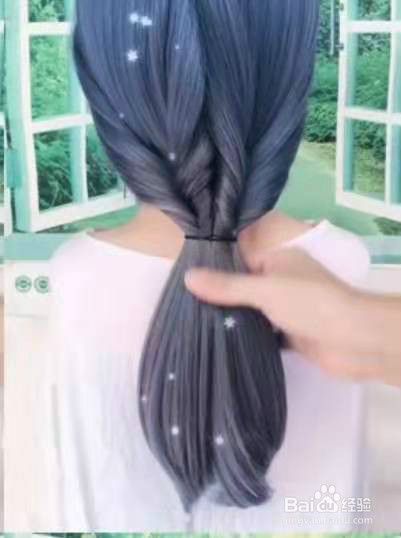 如下图把两个马尾用橡皮筋扎在一起。见下图