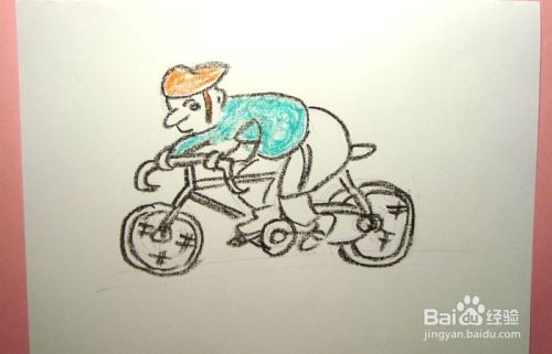 用蜡笔的形式来绘画深受孩子们喜欢,在白纸上用黑色蜡笔绘制图形的轮廓线,接着用不同颜色的蜡笔来涂色,这样画的图形颜色丰富,色彩亮丽有特点,看起来画面有感染力和很强的画面感,给人印象深刻。这里给大家分享一个用蜡笔画公骑自行车的男孩,喜爱绘画的朋友们,跟着步骤一起来画画吧。