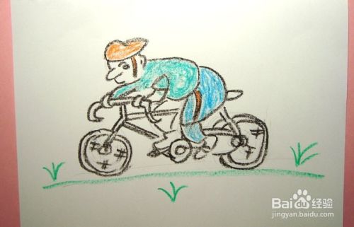 最后,用蓝色的蜡笔给男孩的裤子涂上颜色,并用绿色蜡笔画出绿色的草地。这样骑自行车的男孩蜡笔画就画好了,大家按照步骤,也来画画吧。