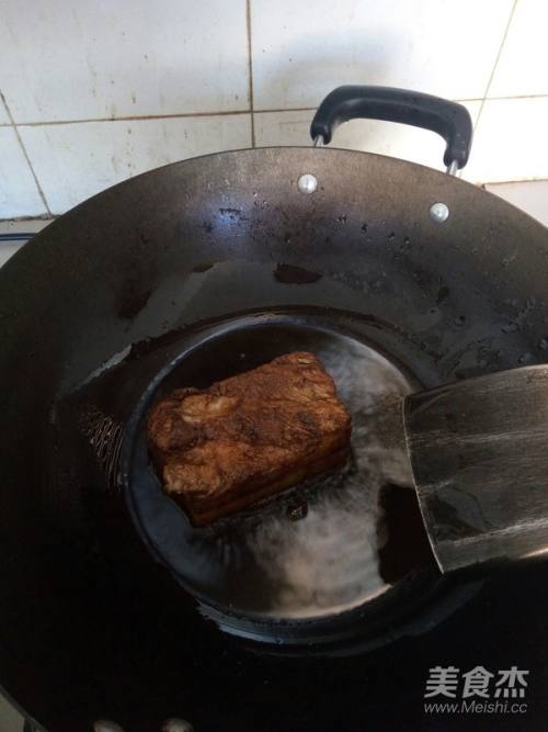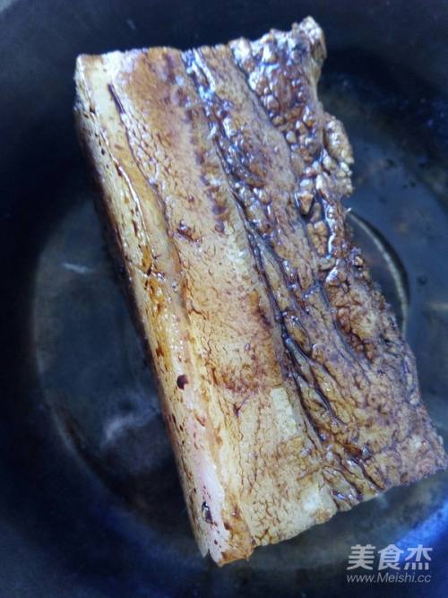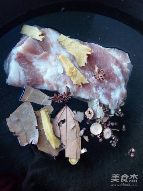 1带皮五花肉洗净,放入生姜、大料,煮至筷子扎肉时不出血水即可