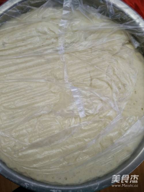 1把鸡蛋液打匀,加入白糖,植物油,泡打粉 酵母 牛奶调成汁,打好后放入面粉,边放边用筷子搅拌揉成面团。