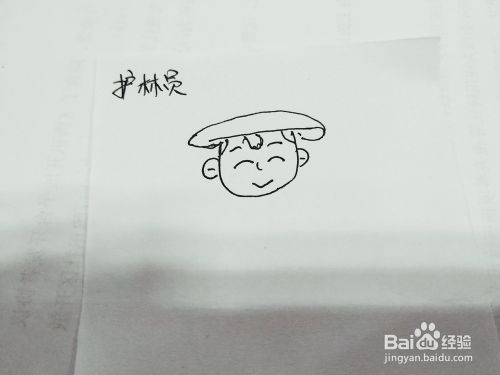 接着我们来画护林员帽子尖尖的顶部部分。如下图