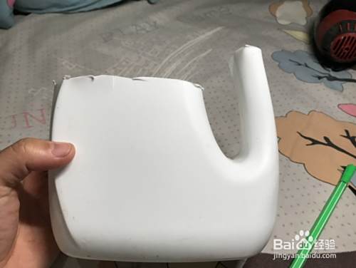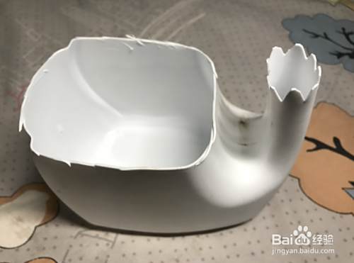 剪掉后,也可以修剪下瓶身的把手部位,可以剪出类似花朵的效果,这样做出类的花盆更漂亮。