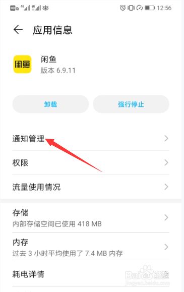 在应用管理中,点击闲鱼。